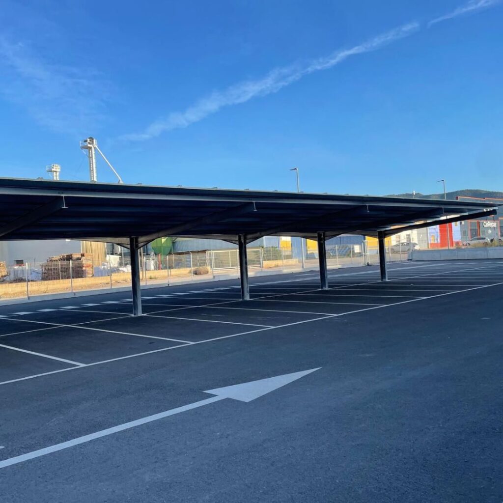 Marquesina para aparcamientos desarrollada para Supermercados El Pino, destinada a la mejora funcional del área de estacionamiento.